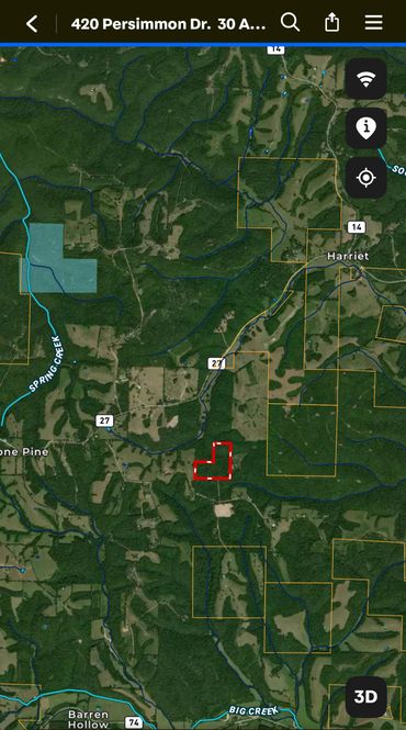 This 30 acre property sits on Persimmon Drive and offers both accessibility and privacy, just minutes from the Buffalo National River, Ozark National Forest, Sylamore WMA, Loafer’s Glory WMA, and the White River. With the privacy of the fully wooded acreage, it provides plenty of space for building, recreation, or creating your own private retreat. Utilities including electric, and high-speed fiber are already available, making it an excellent choice for a hunting property, home, cabin, or getaway in the heart of the Ozarks. The seller is open to entertaining other options for more or less acreage at this location.
